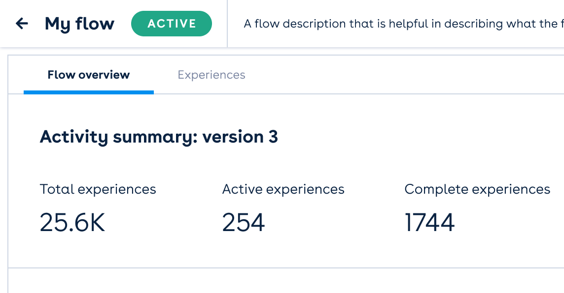 The Experiences tab provides an overview of the experiences in the flow and a high-level summary of your experiences.