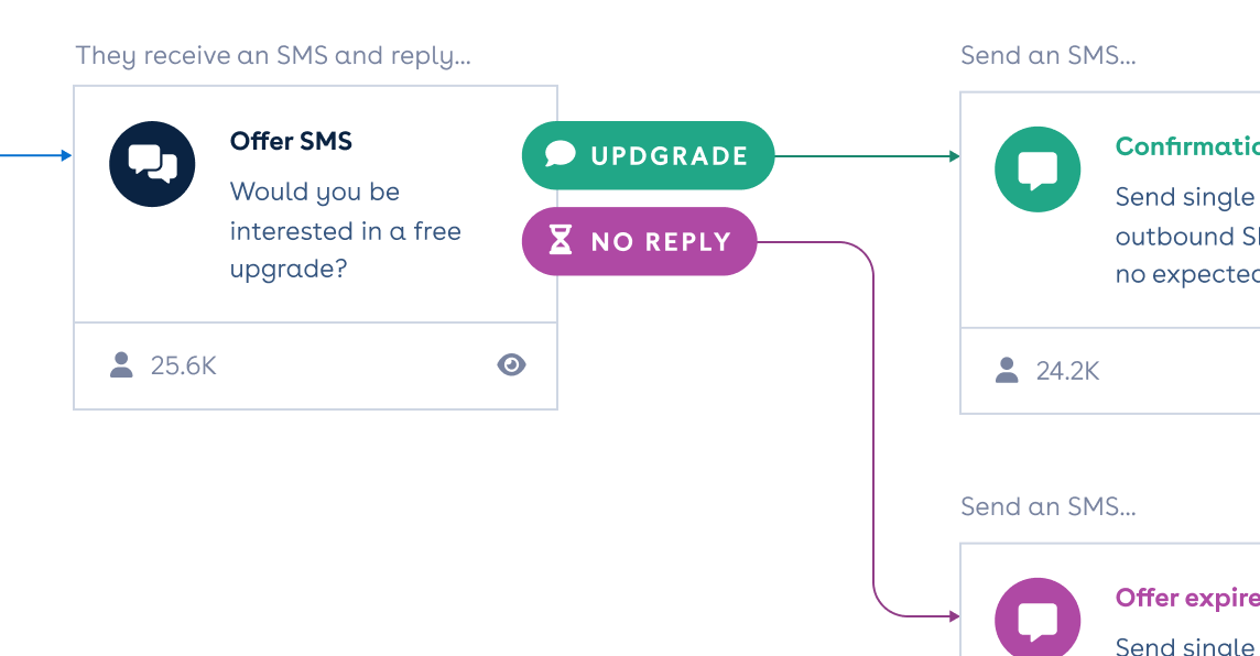 These events can occur later due to carrier delays. For instance, your messaging node (e.g. Conversation node) continues on the Sent path if no failures occur within the set wait time (e.g. 10 minutes). However, a 'Rejected' status might still be reported afterward if issues are detected later. You can configure the wait time in node outcomes.