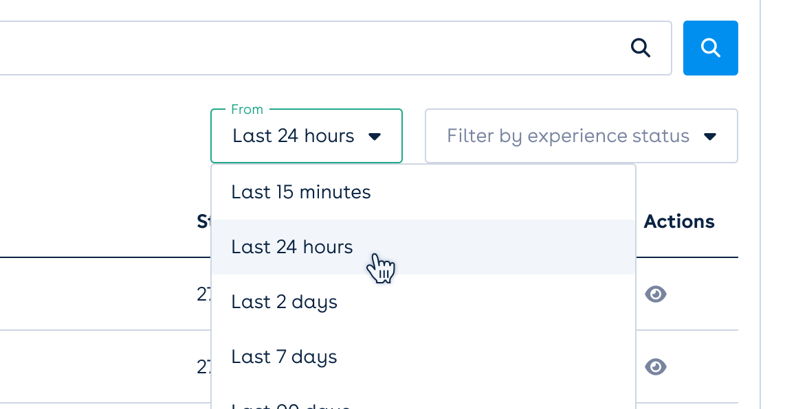 By default, the last 24 hours of experiences that started are shown. You can adjust this by: