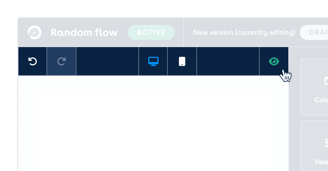 To redo or undo an action, or to preview the email on different screen resolutions, use the icons located above the email design canvas; just beneath the page header.